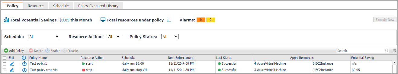 Execute Now: Click Execute Now to execute the selected policy immediately.