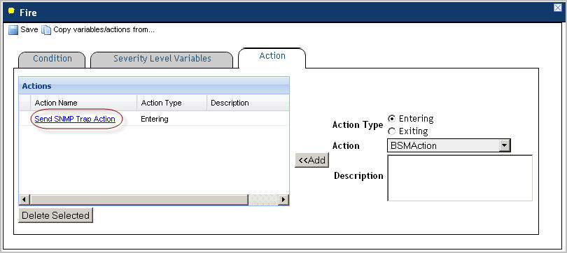 Similar to SNMP Trap Actions, Send SNMP Trap Action can be configured using the Forward Alarms as SNMP Traps rule, described in this topic.