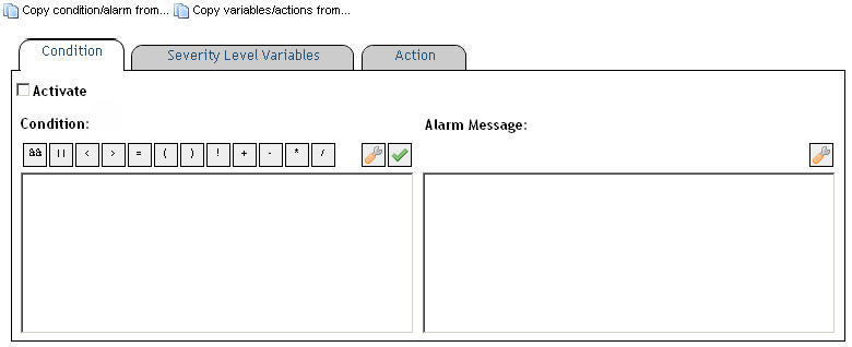 A rule condition is a type of expression that can be true or false. When it evaluates to true, the rule is said to fire, causing any actions that are associated with the rule or severity level to be performed. You can configure a rule to perform one or more actions upon entering or exiting each state. When a multiple-severity rule fires, an alarm also appears in Foglight.