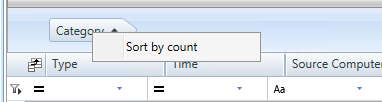 To configure a view filter, use the controls underneath the column names in the event view: click the operator icon to select the operator, and specify the value to filter by. For details about operators, see the Filter Parameters topic.