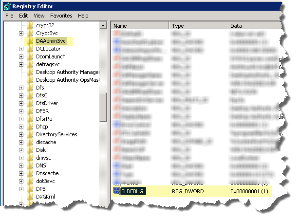 Add or modify the SLDEBUG registry value in "HKLM\SYSTEM\CurrentControlSet\services\DAAdminSvc"