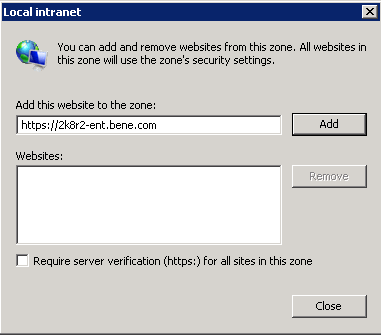 1. Click the Add button to add it to the Websites list. Then click Close.