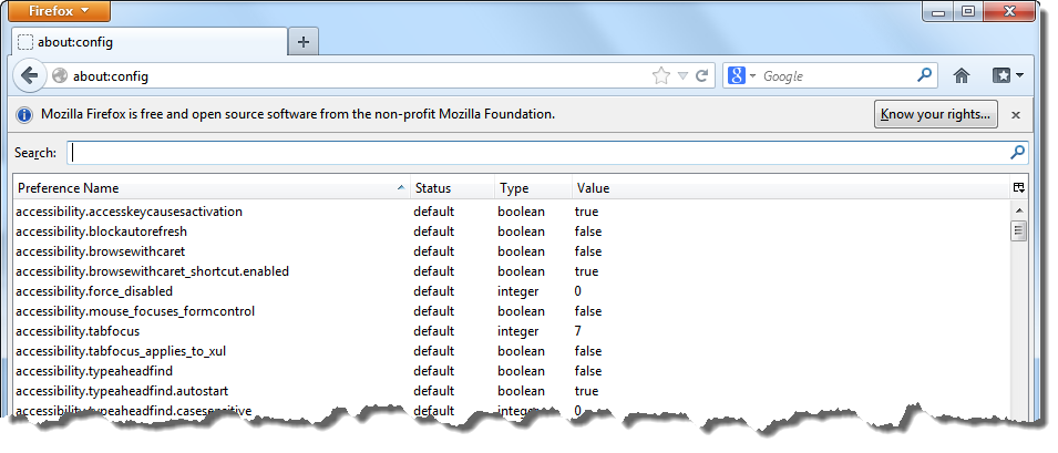 Figure 8: Firefox filtered configuration list