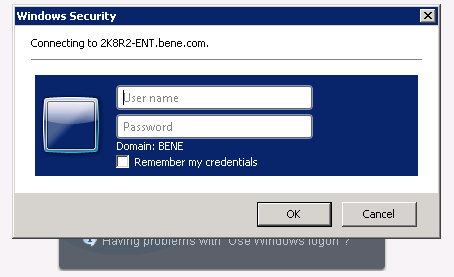 Selecting the option 'Use Windows logon" checkbox with the Internet Explorer web browser may cause a dialog box to be displayed requesting the user credentials regardless of the fact that you chose to logon using the current Windows logon credentials.