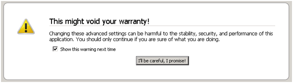 Figure 7: Firefox advanced configuration dialog