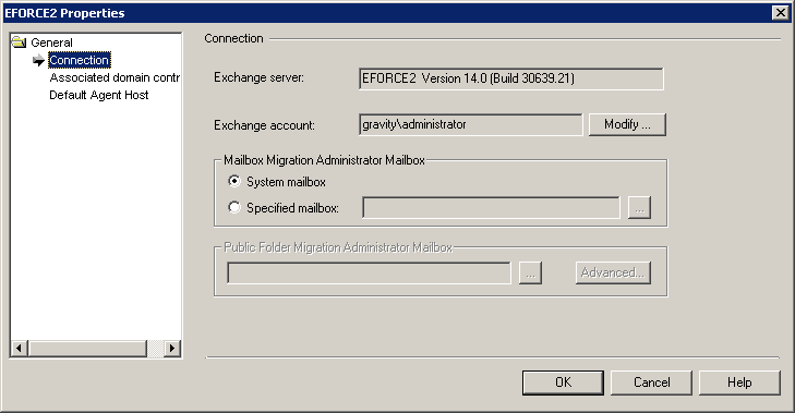 This page also allows you to specify the Mailbox Migration Administrator Mailbox and the Public Folder Migration Administrator Mailbox, which are described below.