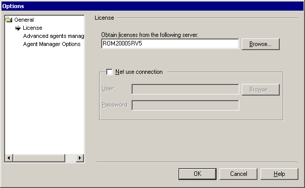 If the agents are running under an account that does not have access to the license server, you can force the agents to establish a Net use connection to the license server by selecting the Net use connection check box and specifying the appropriate credentials.