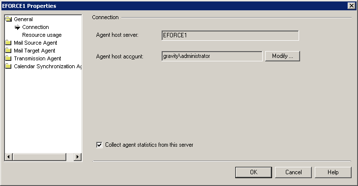 To collect agent statistics from a server, select the Collect agent statistics from this server check box on the Connection page.