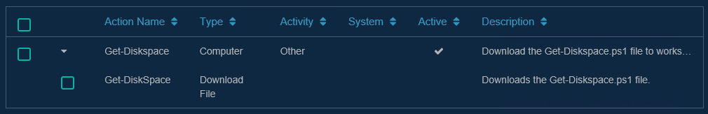 6. Select the task, select "Get-Diskspace" from the Select Action drop-down menu and click the Add To button.