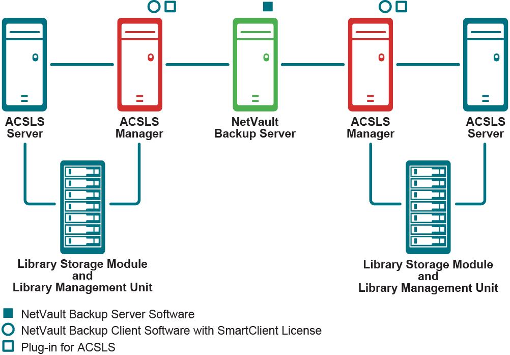 NetVault Backup can be configured to control multiple ACSLS Systems. This configuration is done by adding multiple NetVault Backup ACSLS Mangers to the NetVault Backup Server.
