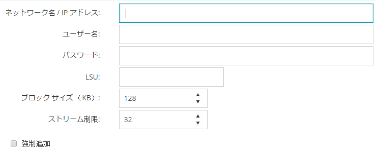 デバイスがすでに他のNetVault Backupサーバーに同じ名前で追加されている場合は、[強制追加]チェック・ボックスを選択します。このオプションは、ディザスタ・リカバリを実行してNetVault Backupサーバーを再構築した場合に役立ちます。