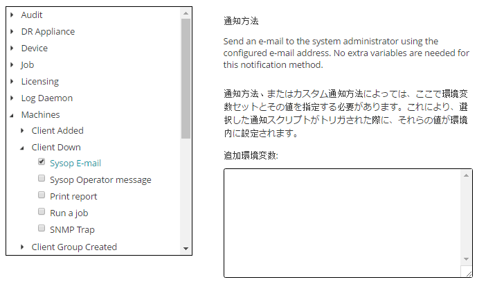 イベント発生時に管理者(Sysop)にメール通知を送信する方法を選択します。
