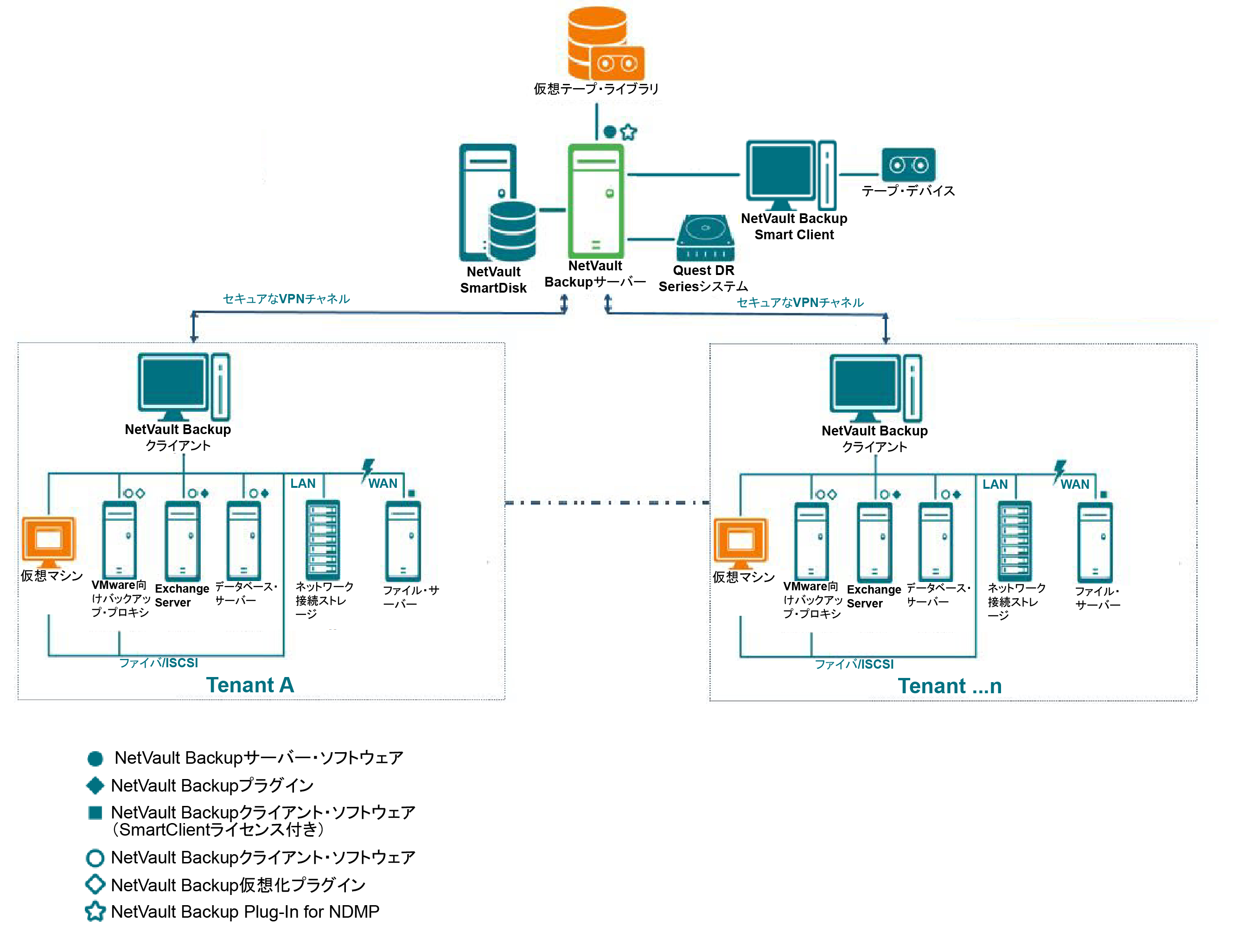 NetVault Backupサーバーには、テナントのデータを保護するための主要サービスが用意されています。