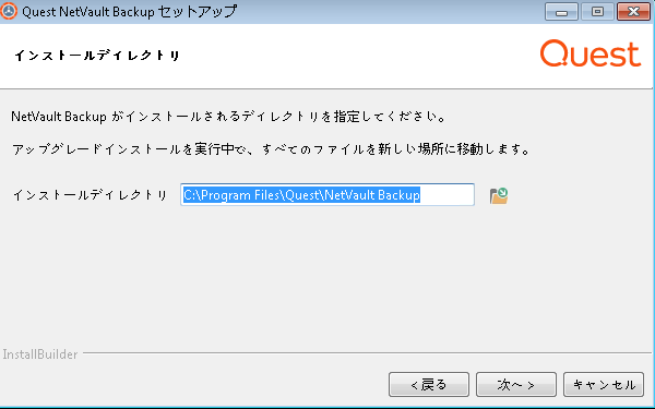 NetVault Backupのデフォルトのインストール・パスは、既存のインストール・パスと同じです。