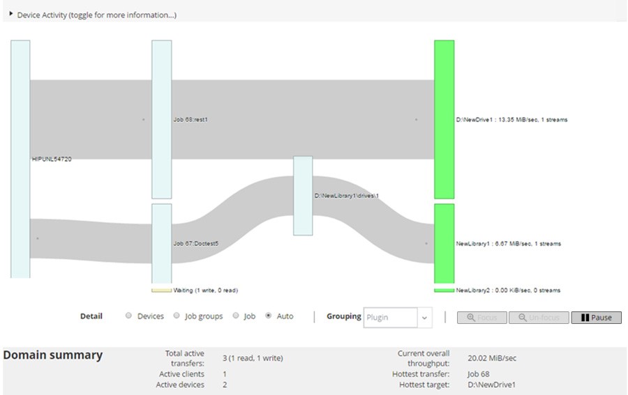 장치: 모든 작업에서 저장소 장치로의 데이터 전송을 보려면이 옵션을 선택 합니다.
