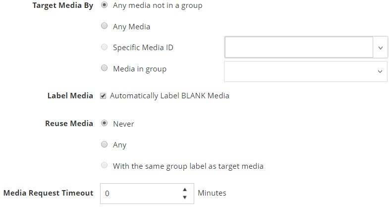 Pour étiqueter automatiquement les éléments de média vierges pendant la sauvegarde, sélectionnez l’option Étiqueter automatiquement les médias vierges case.