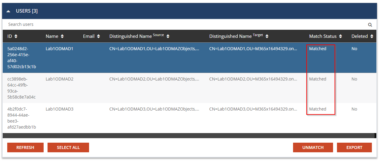 2. Match – This is the step where you will decide how to match existing objects across your Microsoft Entra ID directories. Matching is conducted by pairing sets of attributes to find corresponding objects.  Your two (2) environments may already have some attributes that can be used to find similar objects between the different directories, or you may need to populate some to ensure accurate matching.  For a successful Directory Synchronization, it is most important that existing objects are correctly matched. For the purpose of this guide, DisplayName and Name will be used for matching.