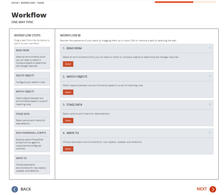 - The workflow task wizard opens. It is a pre-configured set of workflow steps to facilitate the flow of objects and attributes between your directories.