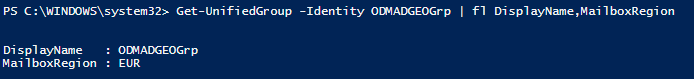 Get-UnifiedGroup -Identity ODMADGEOGrp | fl DisplayName, MailboxRegion