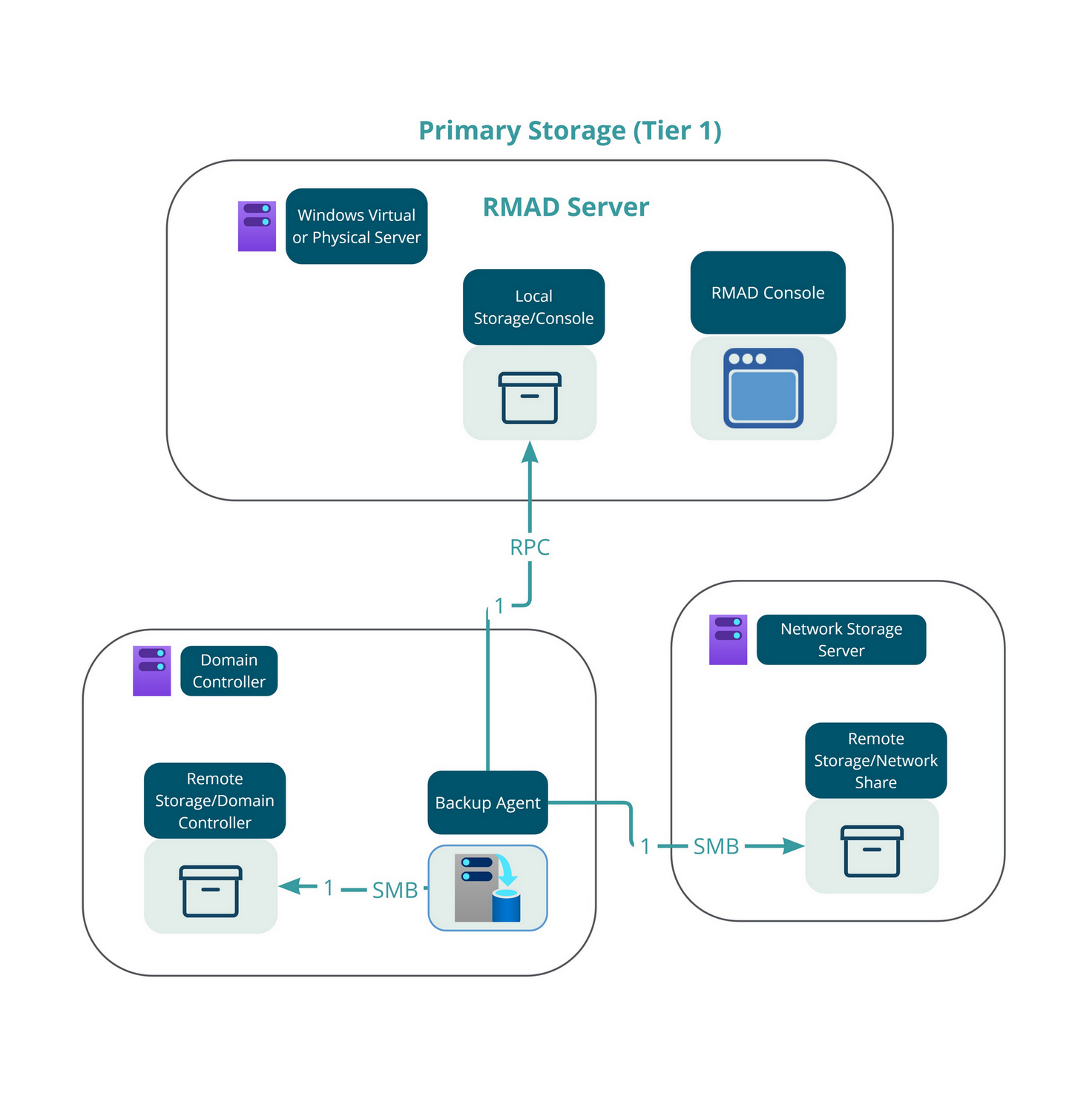 Backups created with Recovery Manager for Active Directory can be stored in multiple locations. Primary storage of backups allows for backup files to be saved on a distributed network, or on selected computers with physically restricted access. Recovery Manager considers these locations as primary storage and is referred to as Tier 1 storage.