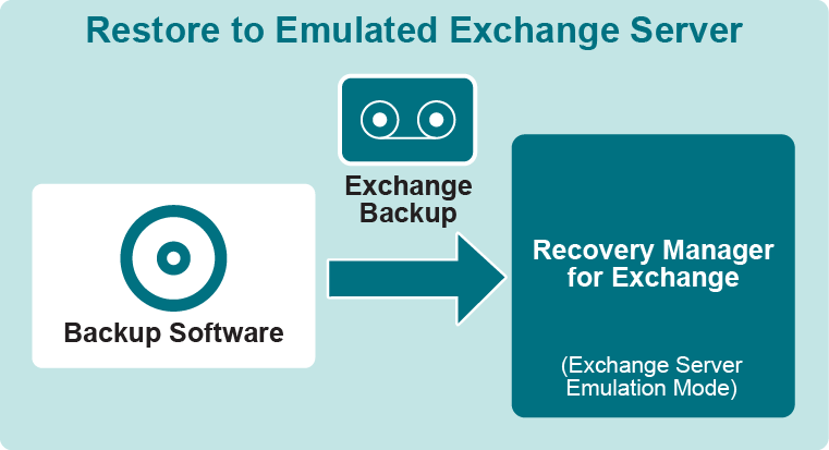 When it is running in Exchange Server emulation mode, Recovery Manager for Exchange provides all the services required for your backup software to restore Exchange data to the computer running Recovery Manager for Exchange.