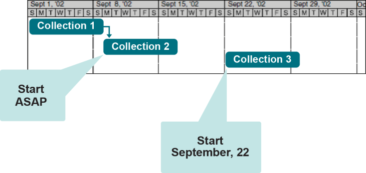 Mailbox synchronization jobs and collections for the entire migration should be set up at the start of the project. Each collection has settings that control when the mailboxes that belong to it are synchronized.