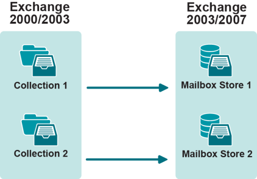 In inter-org Exchange migration you may want to split mailboxes across multiple servers or storage groups or stores (databases), or consolidate mailboxes onto fewer Exchange servers.