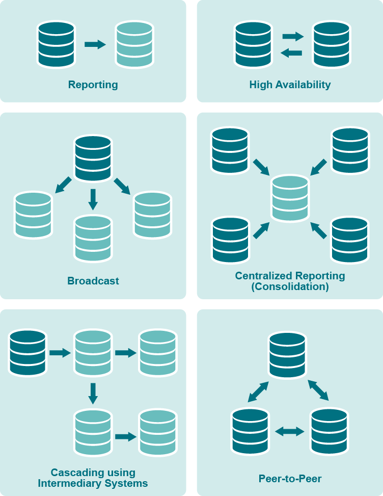 SharePlex supports replication among multiple source databases where applications on each system can make changes to the same data while SharePlex maintains synchronization. In this strategy, the databases are usually mirror images of each other, with all objects existing in their entirety on all systems. Although similar in benefit to a high-availability strategy, the difference between the two is that peer-to-peer allows concurrent changes to the same data, while high availability permits changes to the secondary database only in the event that the primary database goes offline. A few ways to use peer-to-peer replication are to maintain the availability and flexibility of a database by enabling access from different locations or to distribute heavy online transaction processing volumes among multiple access points. For more information, see Configure Peer-to-Peer Replication .