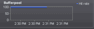 The Buffer Pool graph contains a single series that plots the buffer pool hit rate for the application, expressed as a percentage. This hit rate is the ratio of the physical reads to the logical reads requested by the application for both data and index pages. The rate takes into account hits across all buffer pools configured for the database. If the hit rate is generally high, the buffer pool areas are performing effectively for the application. Lower hit rates indicate that the application is performing more reads from disk than from buffer pools and might therefore be contributing to the overall low hit rate for the database.