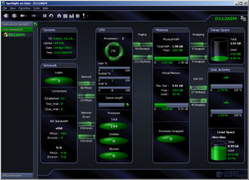 Spotlight is powerful diagnostic and problem-resolution tool for Unix and Linux operating systems. Its unique user interface provides you with an intuitive, visual representation of the activity on your host machine.