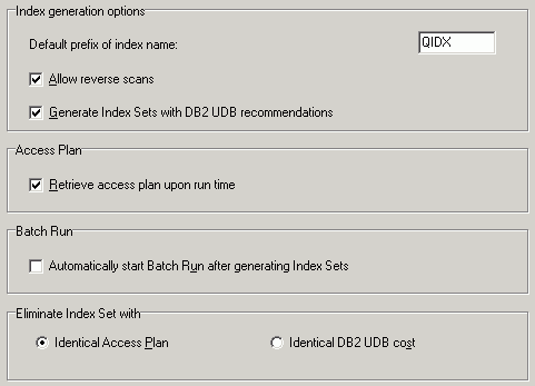 The Index Options page under the Generate Indexes tab on the Options window defines how to generates index-set alternatives. If you selected Customize on the Intelligence page, these values determine the optimization level for index generation.
