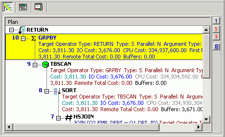 The Object Statistics pane is displayed on the Access Plan tab in the SQL Optimizer window. It lists information for each table, view, or alias referenced in the access plan. If the operation in the selected access plan step accesses a specific object, this object is automatically highlighted in the Table Statistics pane. You can do the following in this pane: