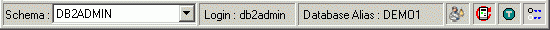 Displays the selected schema and lists available schemas. Use the Schema list to select the schema that corresponds to the SQL statements that you are working with. |