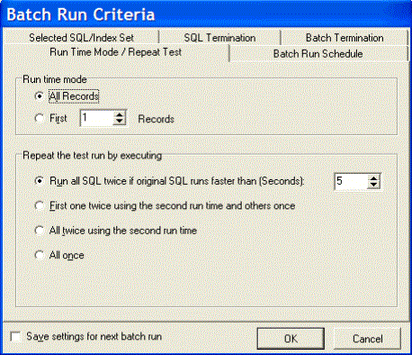 Run all SQL twice if original SQL runs faster than (Seconds) This option executes the SQL and index-set alternatives twice if the run time for the original SQL is greater than the value you enter in the associated field.