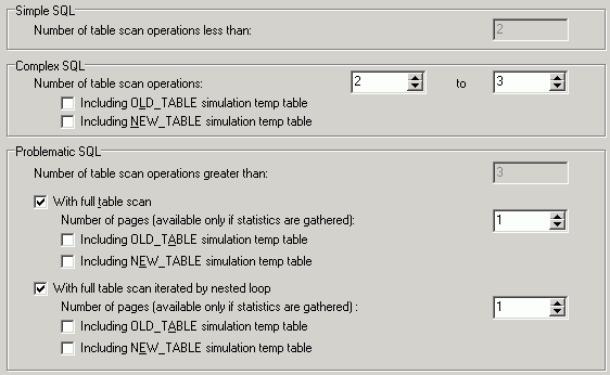 The following settings are used to set the criteria for Simple, Complex and Problematic SQL statements.