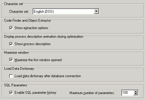 Specify whether to show the Extraction Criteria window when extracting object DDL in the Code Finder module and Objector Extractor module. The Extraction Criteria window allows the specification of the script information.