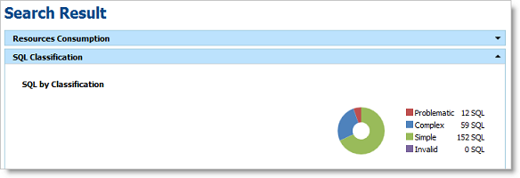 Find SQL also conveniently groups the collected SQL statements into SQL Classification categories (problematic, complex, simple, and invalid).