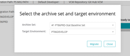 In the Migration Path tab, click and hold your cursor over the source environment for the archive set and drag and drop it in the target environment. |