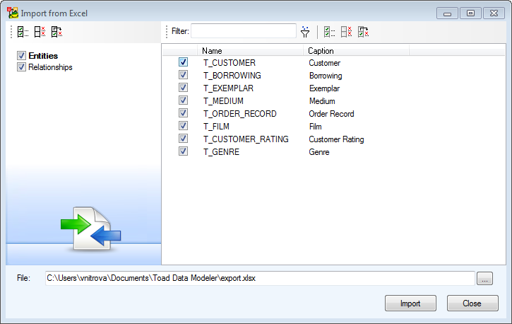4. Click Import. The existing model will be updated to reflect the changes made in the Excel document.