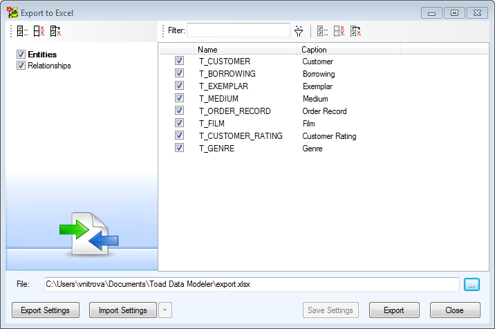 In Toad Data Modeler, you can export your ER diagram into the following graphical formats: