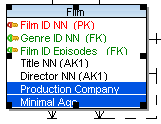 Example: Attributes in the Film Entity Properties form have been ordered manually using the green arrows and finally confirmed Apply. Now see the Film entity in Designer and compare its order of attributes with the order set in the Film Entity Properties form. The order is identical.