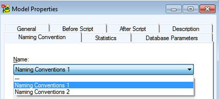• You can link your model to another set of naming conventions in Model Menu | Properties (or Model Properties in context menu) | Naming Convention tab.