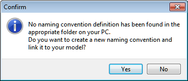 • If no naming conventions are found by Toad Data Modeler, you will be asked to create a new set of naming conventions which will become linked to the currently active model.