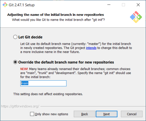 Note: If users select the Override the default branch name for new repositories option during Git installation, the branch name (Master/Non-Master) specified for the Toad Data Modeler product must match the branch name in the GitHub or Bitbucket repository.