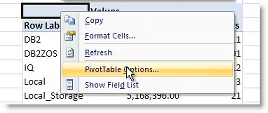 In Excel, after the pivot table is built, right-click on the pivot table and select PivotTable Options.