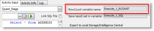 3. Before continuing, notice the name of the variable in the RowCount variable name field. This is the variable that stores the number of rows returned by the query.