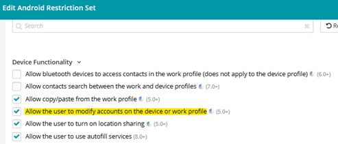 -From the KaceCloud console go to Libraries>Restriction set>Look for the restriction applied to the affected device>on the right panel, hit edit>check the option “allow the user to modify accounts on the device or work profile” then hit ‘Update Restriction Set’ on the bottom-right corner