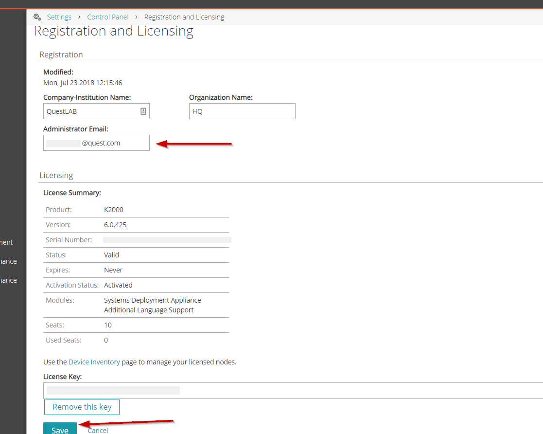 How to Change The Administrator Email in the K2000 Appliance (4256951)