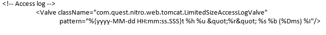 1. Modify the %FGLHOME%\server\tomcatserver.xml file to simply comment out the following lines by cutting/paste the closing comment character --> from the Access log comment.