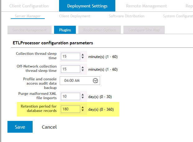 By default the Desktop Authority's reporting database hold data for 180 days. This retention period can be changed to a maximum of 360 days.